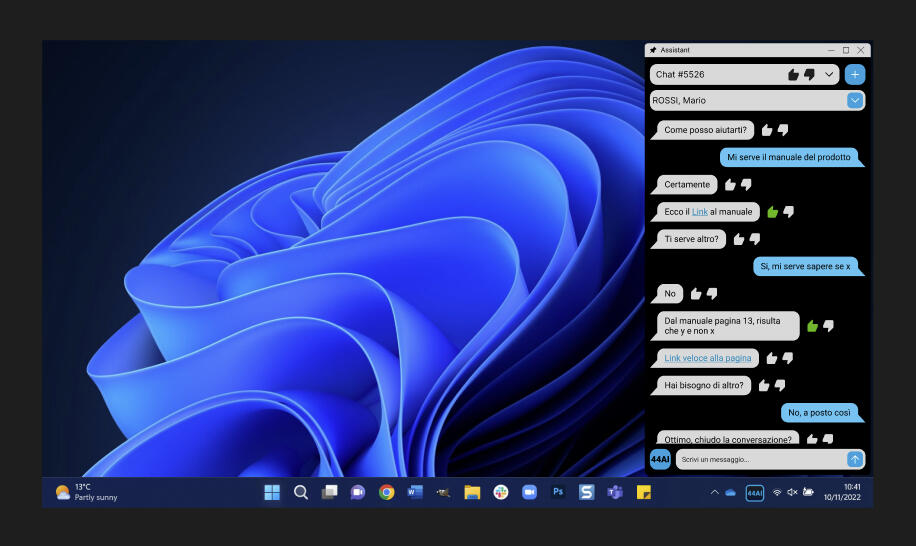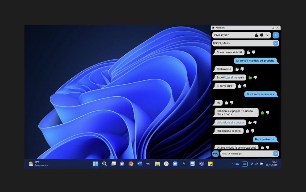La chat con l'IA aveva più libertà di design, pur dovendo rimanere il più possibile leggera dal punto di vista delle risorse in quanto doveva rimanere sempre attiva nella "System Tray" di Windows per essere facilmente accessibile qualsiasi fosse il software in utilizzo.
